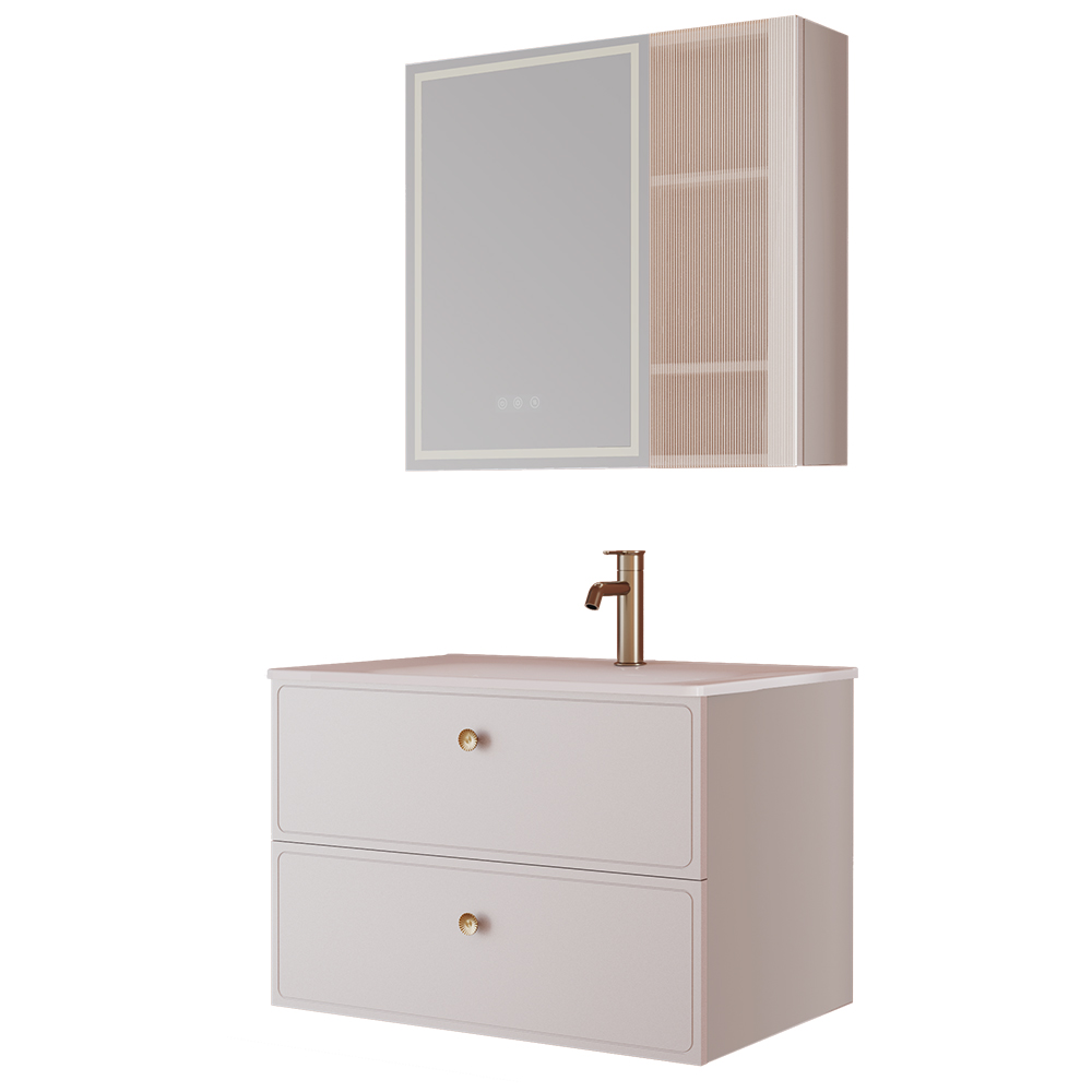 - 2、轻法式浴室柜,法式拱形门板,轻盈配色,浪漫优雅;