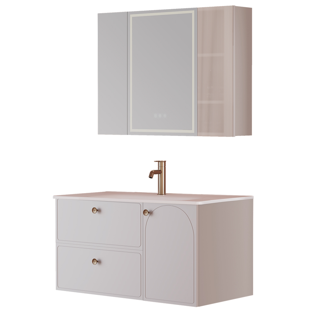 - 2、轻法式浴室柜,法式拱形门板,轻盈配色,浪漫优雅;